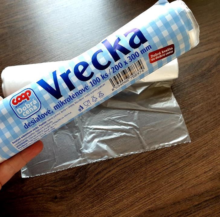 Ja sa pri výbere vrecká riadim vždy pevnosťou materiálu. Vrecko musí byť pevné, ale na druhej strane musí byť poddajné a jemné, inak by materiál mohol prekážať. Moje obľúbené sú obyčajné desiatové vrecká z Coop Jednoty, ktoré sú jemné, no napriek tomu pevné.